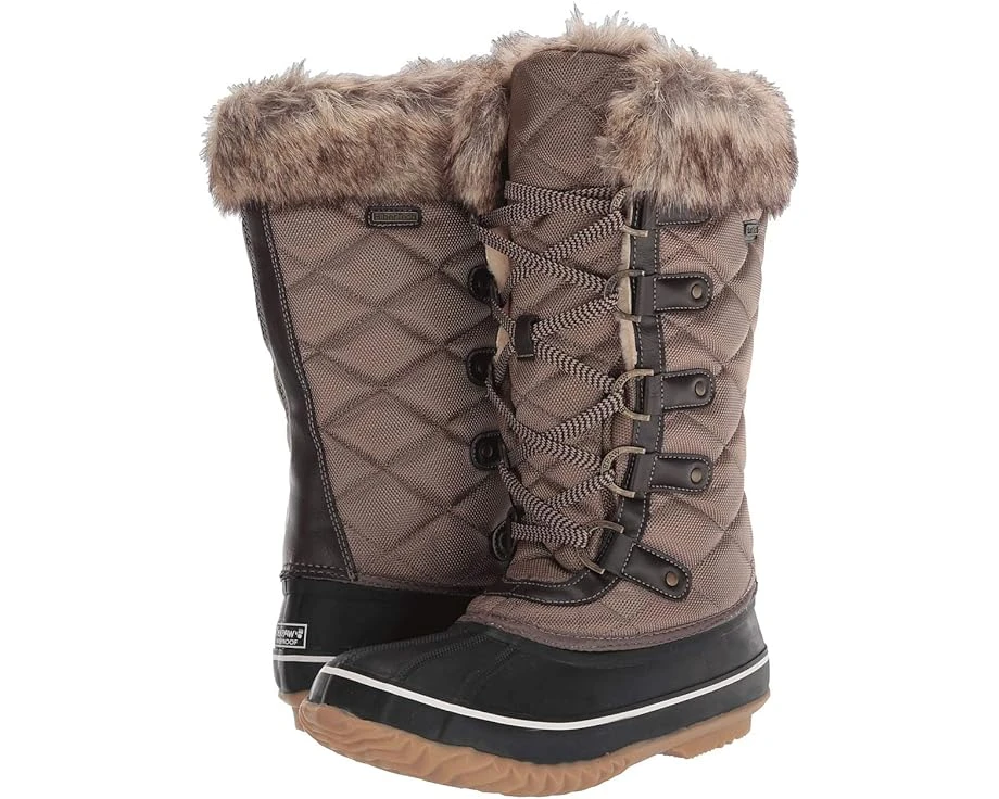 The BEARPAW® McKinley boot provides a waterproof full rubber shell to keep you dry from the rain and a quilted nylon upper to keep you in style!SKU: #9279121Lace-up closure.Duck-toe construction.Bleached and dyed sheepskin lining originated from China.Lightly padded footbed.Rubber outsole.Imported.Product measurements were taken using size 10, width M. Please note that measurements may vary by size.Measurements: