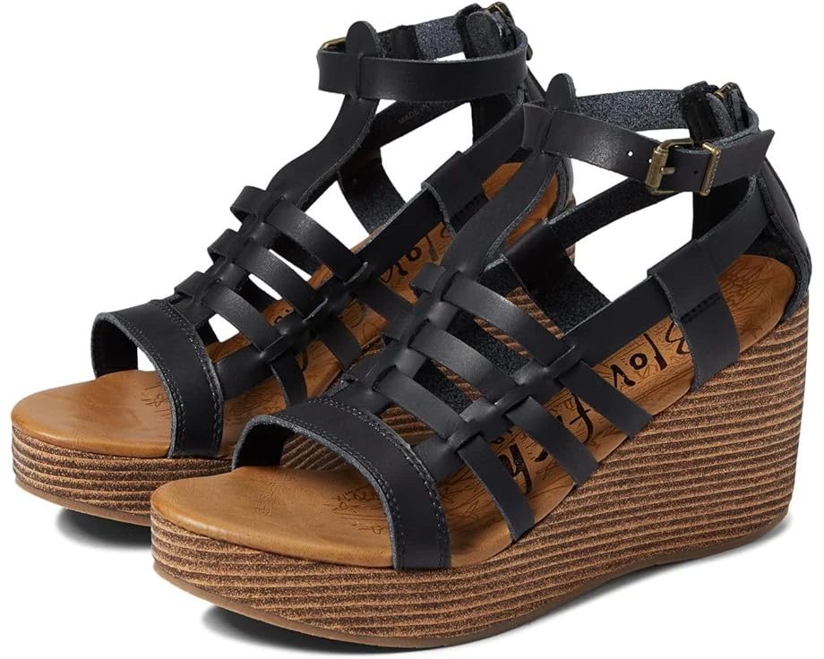 Strappy and sassy, the Blowfish® Piper Heeled Sandals perfectly elevate your street style.SKU: #9676806Man-made upper and lining.Cushioned footbed.Adjustable buckle closure on the ankle.Open toe silhouette.Caged sandal design.Wedge heel.Man-made outsole.Imported.Product measurements were taken using size 8, width M. Please note that measurements may vary by size.Measurements: