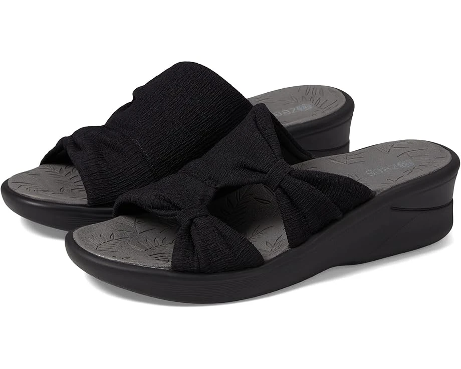 Click here to view video.SKU: #9860415Slip your toes into the Bzees® Smile More Flat Sandals that have stunning tied bow detailing.Stretch fabric upper.Fabric lining and anatomical insole.BZEES Cloud Technology for a lightweight design.Anti-microbial and odor-resistant.Easy slip-on style.Wedge heel.Open round toe.Durable man-made outsole.Imported.Product measurements were taken using size 9, width M. Please note that measurements may vary by size.Measurements: