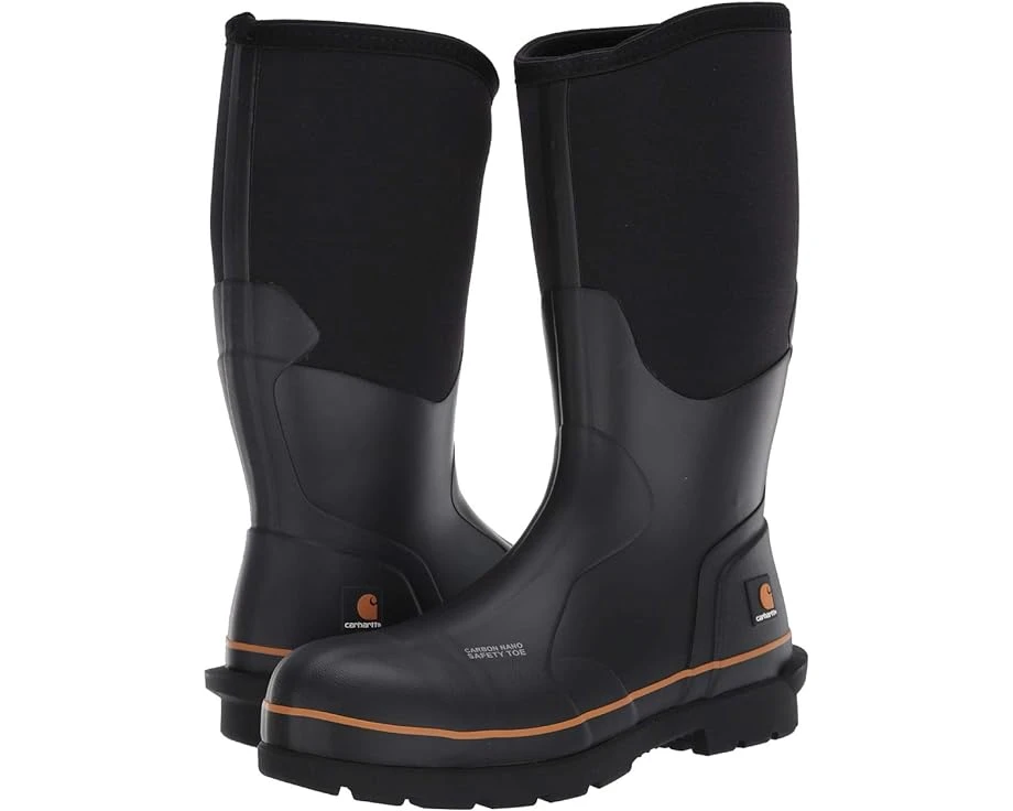SKU: #9275819Style number: CMV1451 (Black).Carbon Nano safety toe protects against impact and compression hazards while being lighter than traditional safety toe protection. Meets ASTM 2413-17 standards.Pull-on work boot made of a rubber foot and a 5mm neoprene shaft. Features secondary protection against incidental contact with electrical circuits of 18,000 volts or less under dry conditions; Meets ASTM 2413-18 electrical hazard standards.