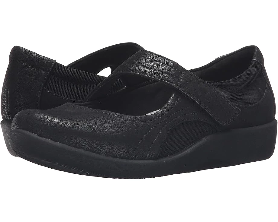 The Sillian Bella is part of the Clarks® Cloudsteppers Collection.SKU: #8712411Effortless style and comfort you desire is what the Clarks® Sillian Bella mary jane is all about.Synthetic nubuck upper with an adjustable hook-and-loop closure strap.Easy slip-on style.Soft fabric lining. Cloudsteppers™ removable footbed.Cushion soft technology for added comfort.Durable rubber outsole.Imported.Product measurements were taken using size 9, width B – Medium. Please note that measurements may vary by size.Weight of footwear is based on a single item, not a pair.Measurements: