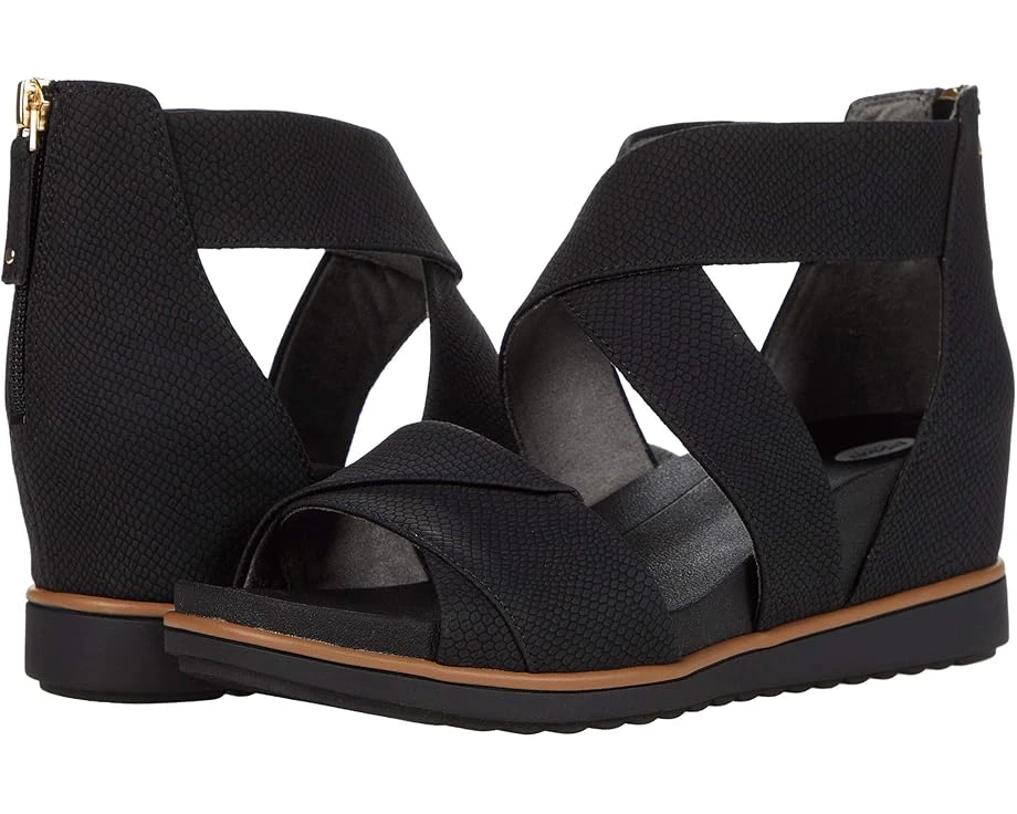 Patterned straps cross at the toes and vamp to create a gladiator sandal look.SKU: #9503107Take your look from day, to dinner, to night life without compromising comfort in the Dr. Scholl’s® Golden Hour heeled sandals.Made with a microfiber lining and insole to ensure a comfortable feel. Slip on fit with back heel zipper for easy removal.Textured outsole for durability.Constructed entirely of man-made materials.Imported.Product measurements were taken using size 9, width M. Please note that measurements may vary by size.Measurements: