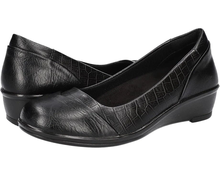 Walk comfortably donning the simplistic and stylish Easy Street® Bernice flats for everyday wear.SKU: #9852705Faux leather upper.Fabric lining.Raised round-toe silhouette.Enhanced with a heel to toe padded insole for true comfort.Comfort wedge construction.Synthetic rubber outsole.Imported.Single shoe item weighs 1.81 oz.