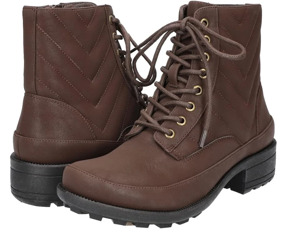 Add personality to any outfit the Easy Street™ Elsie lug sole designed combat boots.SKU: #9857872Fashionable upper with quilted textured details.Fabric lining.Easy motion by easy street ultra-light insoles.Stretch for fit and comfort.Easy street wave construction.Comfort Wave construction.Lace-up style and zippered closure.Round-toe design.Faux leather outer construction.Synthetic rubber outsole.Measurements: