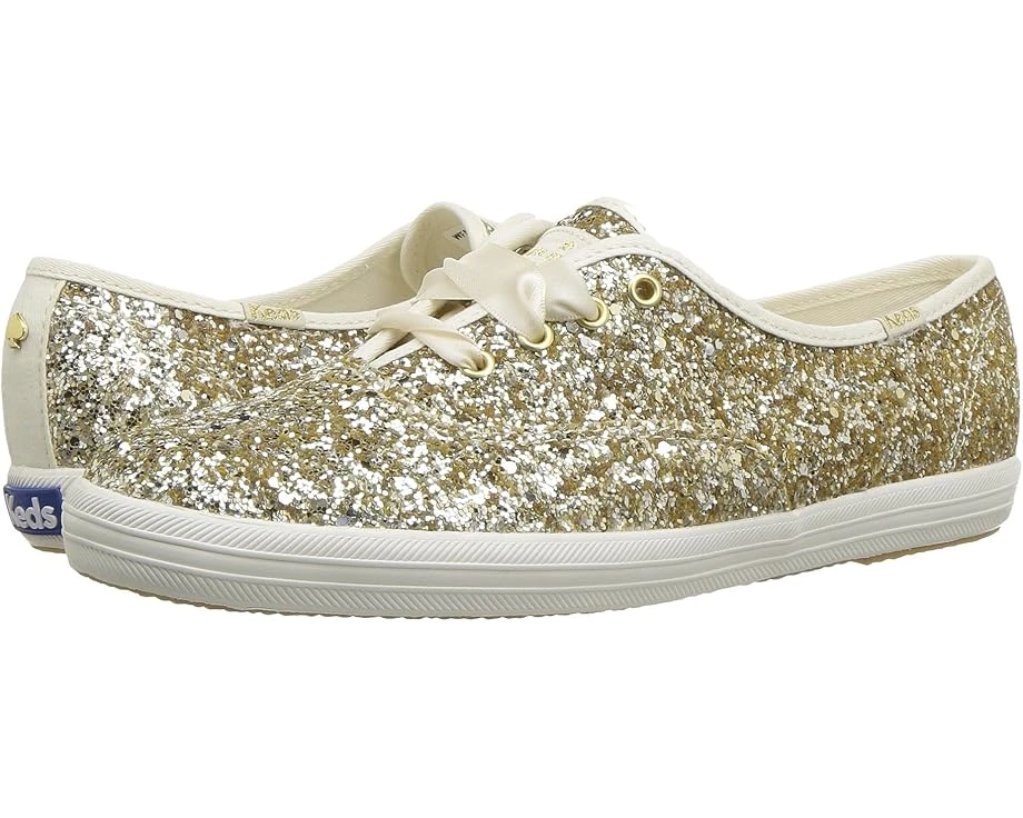 Glitter covered canvas Keds x kate spade new york® Champion sneakers with a lace-front closure with metal eyelets.