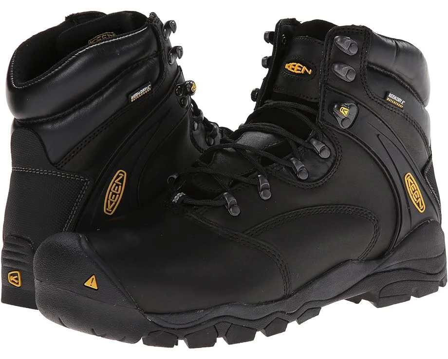 For safety against the many hazards of a work site, lace into the reliable comfort, performance and protection of the Louisville 6″ Steel Toe work boot from KEEN® Utility.SKU: #8016965Steel safety toe meets ASTM F2412-11 and F2413-11 I/75 C/75 EH (Electrical Hazard) standards.Combination waterproof nubuck leather and abrasion-resistant Tough-Tec leather uppers. KEEN.DRY membrane ensures waterproof breathability.Locking metal hook and lacing eyelets. Anatomically correct protective steel-toe for a roomier toe box. Plush collar for added comfort. Removable, dual-density EVA footbed is metatomical for better support. Dual-density, compression molded EVA midsole provides long-lasting cushioning.Non-marking, oil and slip-resistant KEEN.GRIP rubber outsole meets or exceeds ASTM F1677-96 Mark II non-slip testing standards. Imported. Product measurements were taken using size 11, width EE – Wide. Please note that measurements may vary by size.Weight of footwear is based on a single item, not a pair.Measurements: