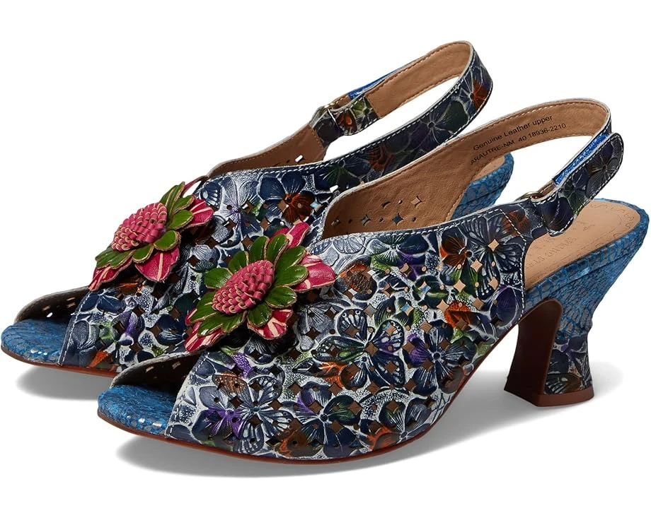 Please note that due to the unique hand-painted design of L’Artiste by Spring Step® footwear, the exact design may vary from piece to piece.SKU: #9849830Take every step in style and confidence wearing the sleek and stylish L’Artiste by Spring Step® Arautre Heels.Leather upper.Leather lining and insole.Open round toe.Hook-and-loop closure.Decorative detailing on upper.Brand logo on insole.Flared heel.Printed allover.Synthetic outsole.Imported.Product measurements were taken using size EU 40 (US Women’s 9), width M. Please note that measurements may vary by size.Measurements: