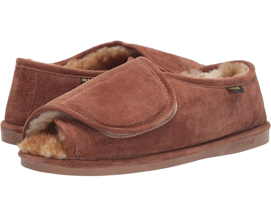 Step into unforgettable comfort with this Old Friend® slipper.SKU: #108085Soft, genuine 100% sheepskin uppers.Hook-and-loop closure for an adjustable fit.Sheepskin lining for additional warmth.Durable rubber outsole.Imported.This product contains real fur from Sheep or Lamb.