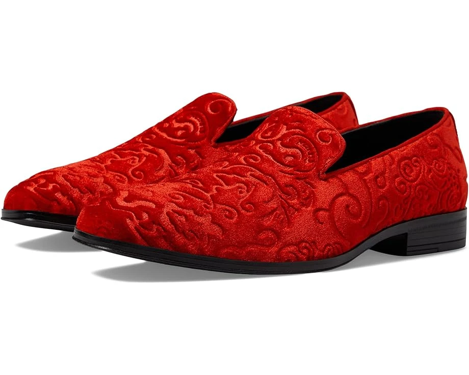 Walk stylishly and accentuate a refined appeal wearing Stacy Adams™ Saunders Velour Slip-On Loafers.SKU: #9829870Velour textile upper.Man-made lining.Fully cushioned and satin textile covered insole with memory foam for all-day comfort.Slip-on style.Slight block heel.Elaborate design on upper.Brand logo on insole.Squared toe.Synthetic outsole.Imported.