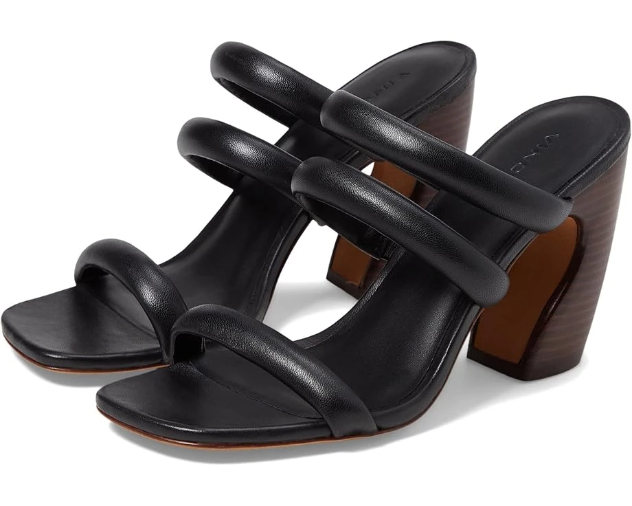 Elevate your styling game and bring that subtle charm to it by donning the Vince ® Dara sandals. SKU: #9859921Suede three-band upper. Leather lining and footbed. Easy slip-on style. Open square toe silhouette. High architectural heel. Durable leather outsole. Imported. Product measurements were taken using size 7, width M. Please note that measurements may vary by size.Weight of footwear is based on a single item, not a pair.Measurements: