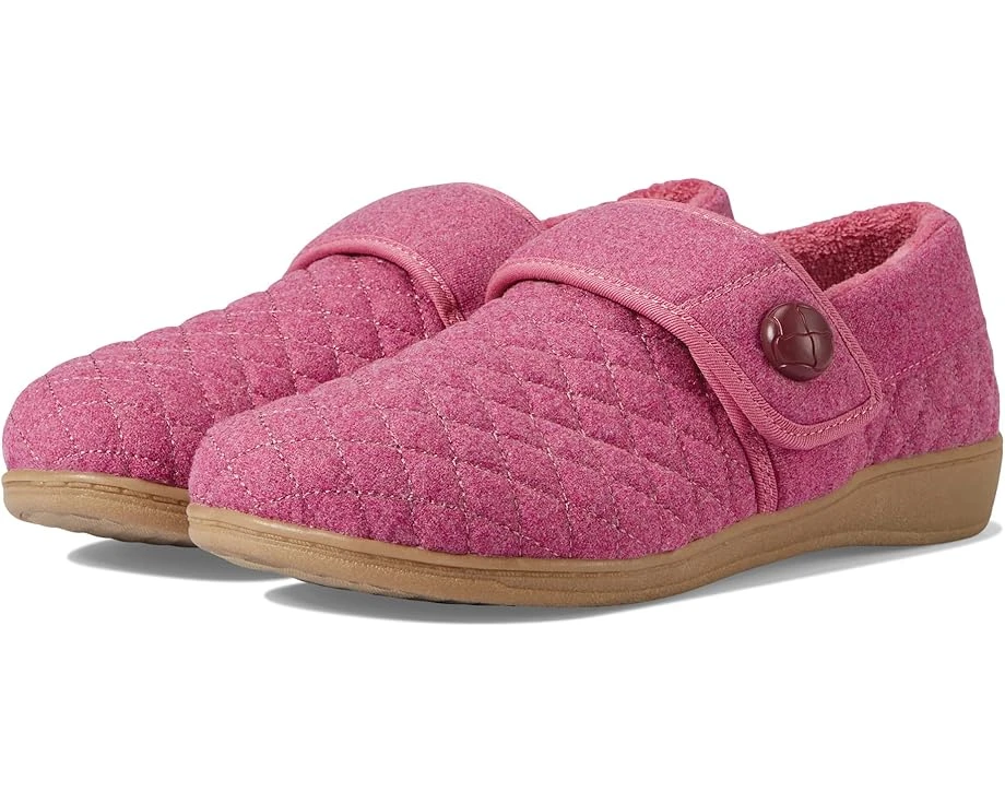 The VIONIC® Jackie slipper offers a round toe and a soft textile lining. SKU: #9408777Slip-on slipper with an adjustable hook-and-loop strap over vamp. Textile Covered EVA footbed. Soft textile lining. Durable rubber sole. Imported.Product measurements were taken using size 8, width M. Please note that measurements may vary by size.Weight of footwear is based on a single item, not a pair.Measurements: